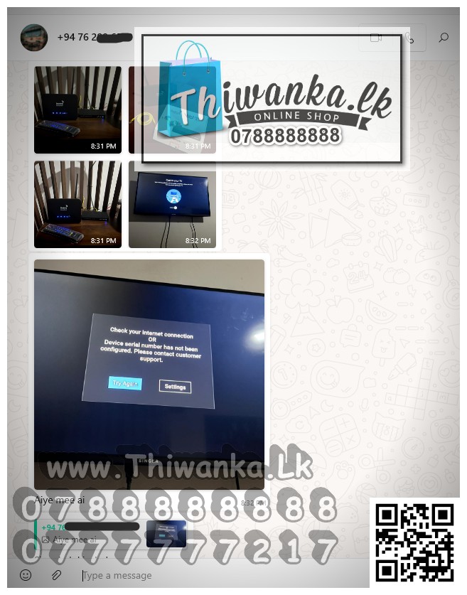 තිවංක Lk සන්නාමය , යටතේ ඔබේ Dish ඇන්ටනා නව සවිකිරීම් / Dish ඇන්ටනා රෙපයාර් / Dish ඇන්ටනා නැවත සවිකිරීම් ඇතුළු , සේවා සපයාගත් ඔබට ස්තුති. ලංකාවේ වැඩිම පිරිසක් සන්නිවේදන සේවා ලබාගන්නා තිවංක Lk – 07 – 8 ඉලක්කම් 8ක් එන අංකයට : – 078 888 8888